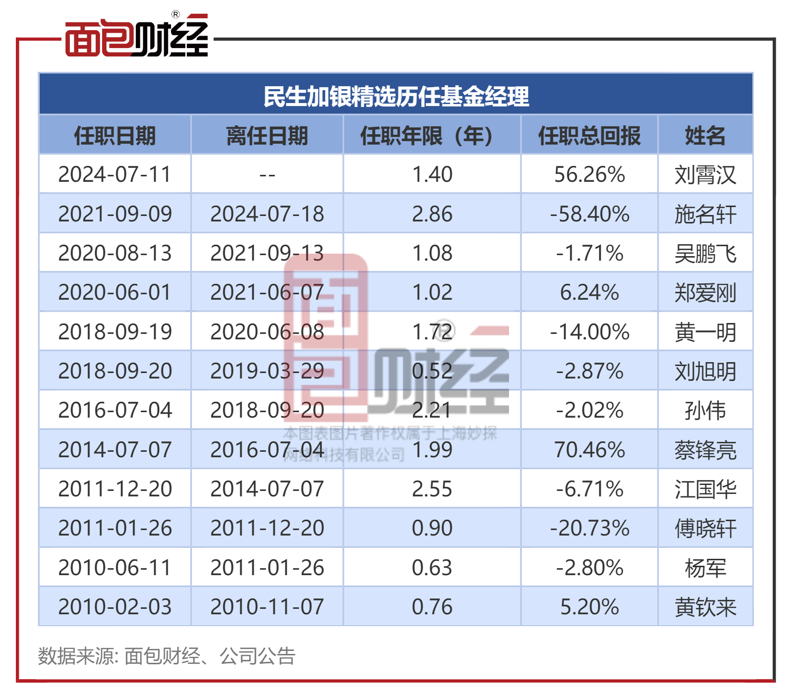 民生加银精选现任基金经理为刘霄汉,自2024年7月11日开始管理该产品。