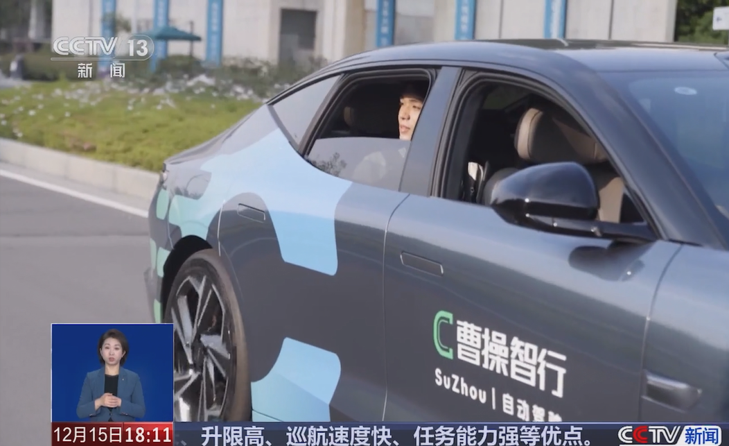 12月15日,曹操出行Robotaxi作为自动驾驶产业化运营的成果案例,登上央视新闻节目。