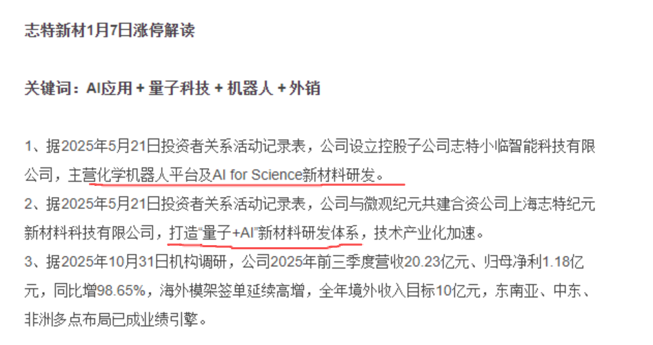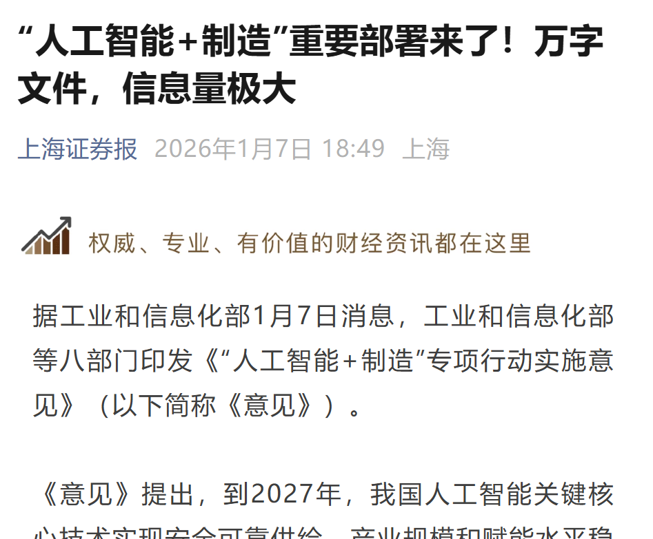 这是志特新材的涨停解读,在看人工智能+制造的文件里面是怎么说的: