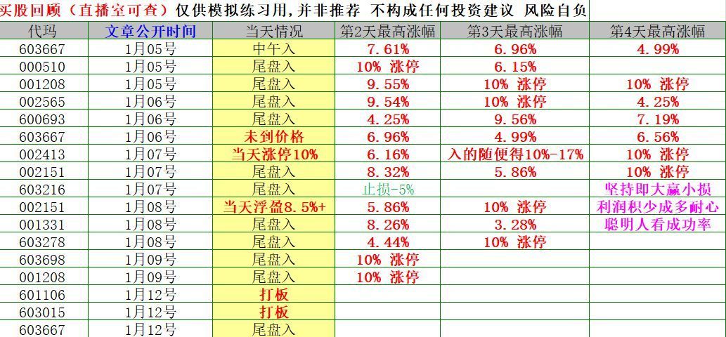 1月第一周战绩公开,连续选股12个,仅1个不涨