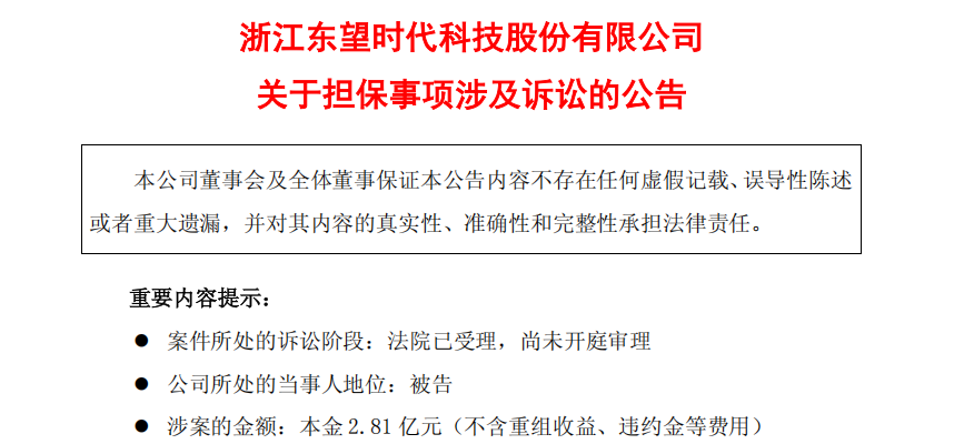 涉案金额2.81亿元,东望时代再陷关联方担保诉讼