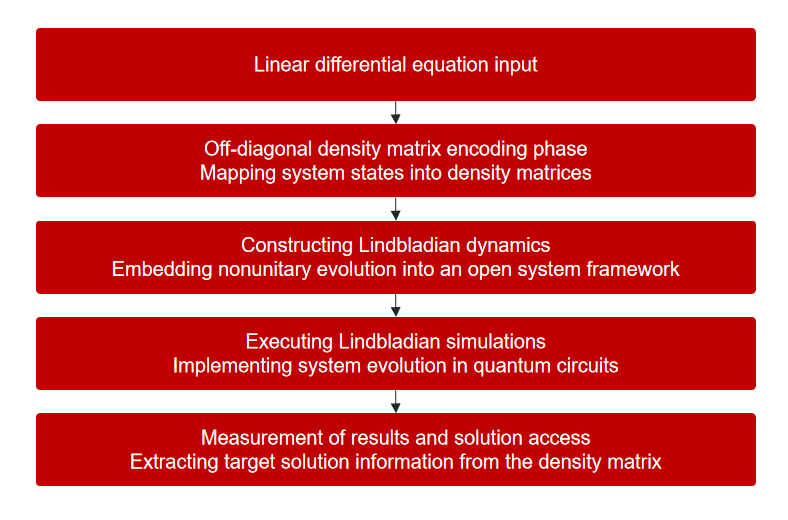 为突破这一关键障碍,微算法科技(NASDAQ:MLGO)提出了一种创新的理论与实现框架——通过 Lindbladians 设计线性微分方程的近似最优量子算法。该算法基于开放量子系统理论,引入了一种全新的编码思想——非对角密度矩阵编码(Off-Diagonal Density Matrix Encoding, ODDME)。该编码方式充分利用 Lindblad 动力学固有的非幺正性质,将一般线性ODE自然映射到密度矩阵的非对角子空间中,使得原本难以在幺正电路中直接实现的线性动力学,可以在一个经过精心构建的开放量子系统模拟框架中被高效求解。