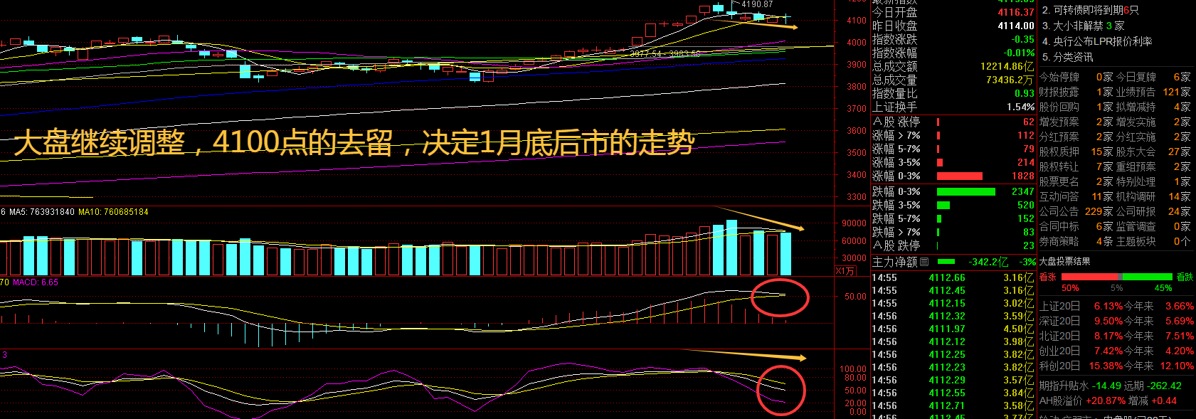上证指数周二在4100点附近调整5日了,该做出抉择了,市场将会选择明显的方向了,大家还是防守为主。Wind数据显示,截至1月19日18时,A股共有451家上市公司对外披露2025年业绩预告,其中156家预喜。42家上市公司预计2025年全年归属于上市公司股东的净利润同比增幅下限超过100%。接下来注意上证指数能否在4100点之上稳住。
