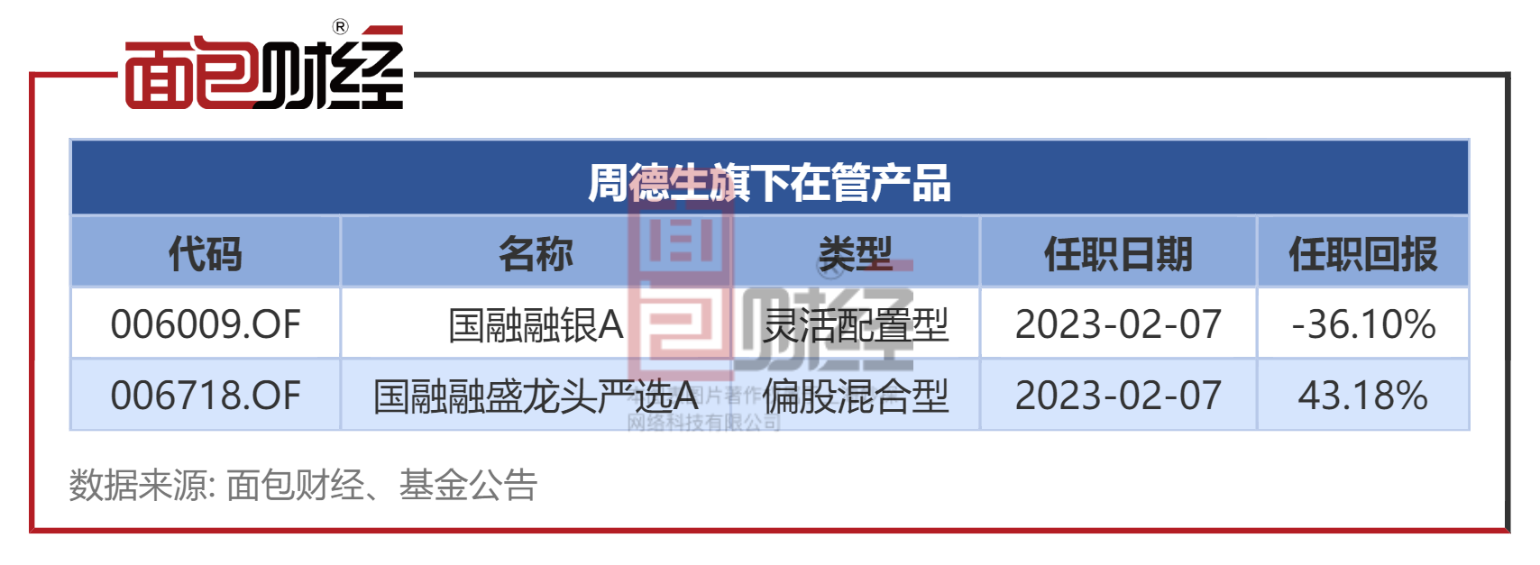 值得关注的是,周德生同样于2023年2月开始管理国融融银A,任职期内亏损却高达36.1%,业绩差异巨大。