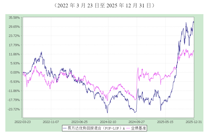 易方达优势回报混合(FOF-LOF)成立于2022年3月,基金经理为胡云峰,该基金2025年收益率达到60.51%,同样表现居前。