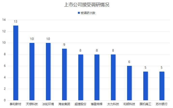 从调研频率来看,泰和新材(002254.SZ)以13次调研位居榜首,天禄科技(301045.SZ)、冰轮环境(000811.SZ)以10次紧随其后,海安集团(001233.SZ)和超捷股份(301005.SZ)分别为9次和8次。这些高频被调研公司主要集中在制造业和技术创新领域。