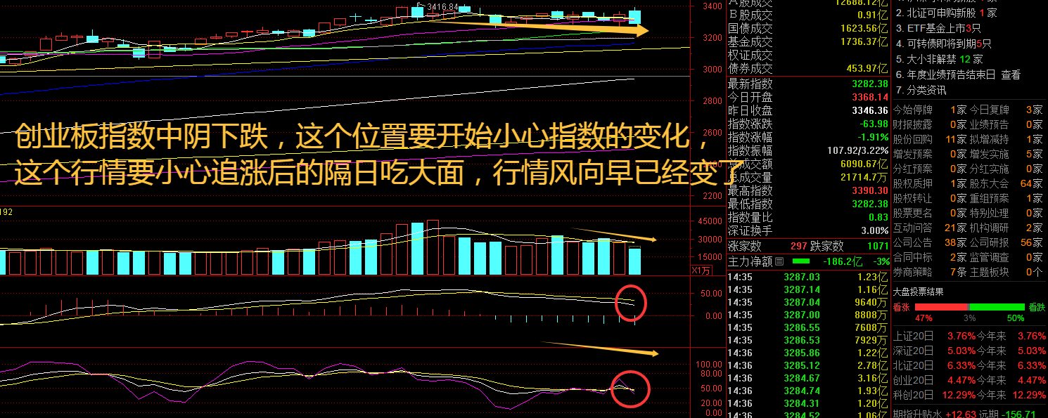 创业板指数周一高开低走,两市个股连续6个交易日跌多涨少了,这行情谨慎为上先考虑“保命”。虽然临近春节长假,但A股市场交投活跃度依然处于较高水平,资金对高景气板块的承接力强劲,预示春季行情仍有进一步演绎的空间;短期市场或呈结构性震荡,而随着春季行情进入后半程,2月市场风格可能进一步向权重板块、价值风格切换。接下来注意创业板指数能否在3300点之上稳住。