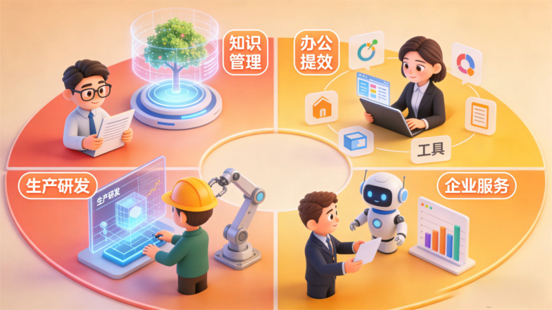 真正的转型发生在具体的业务环节。我们观察到,企业的需求已从基础办公辅助,全面聚焦于知识管理、办公提效、生产研发、企业服务四大价值高地。在这里,垂类大模型提供深度行业理解,而企业级智能体则作为直接赋能业务的最小执行单元,将理解转化为行动。正是这种技术与业务的深度融合,催生了驱动企业转型升级的“新质生产力”。