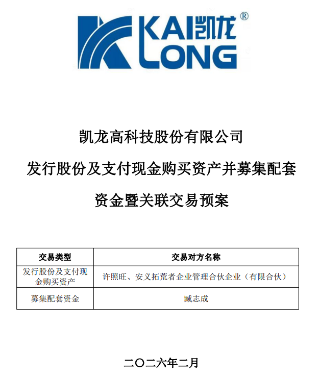 2026年2月3日晚间,凯龙高科披露发行股份及支付现金购买资产并募集配套资金预案。