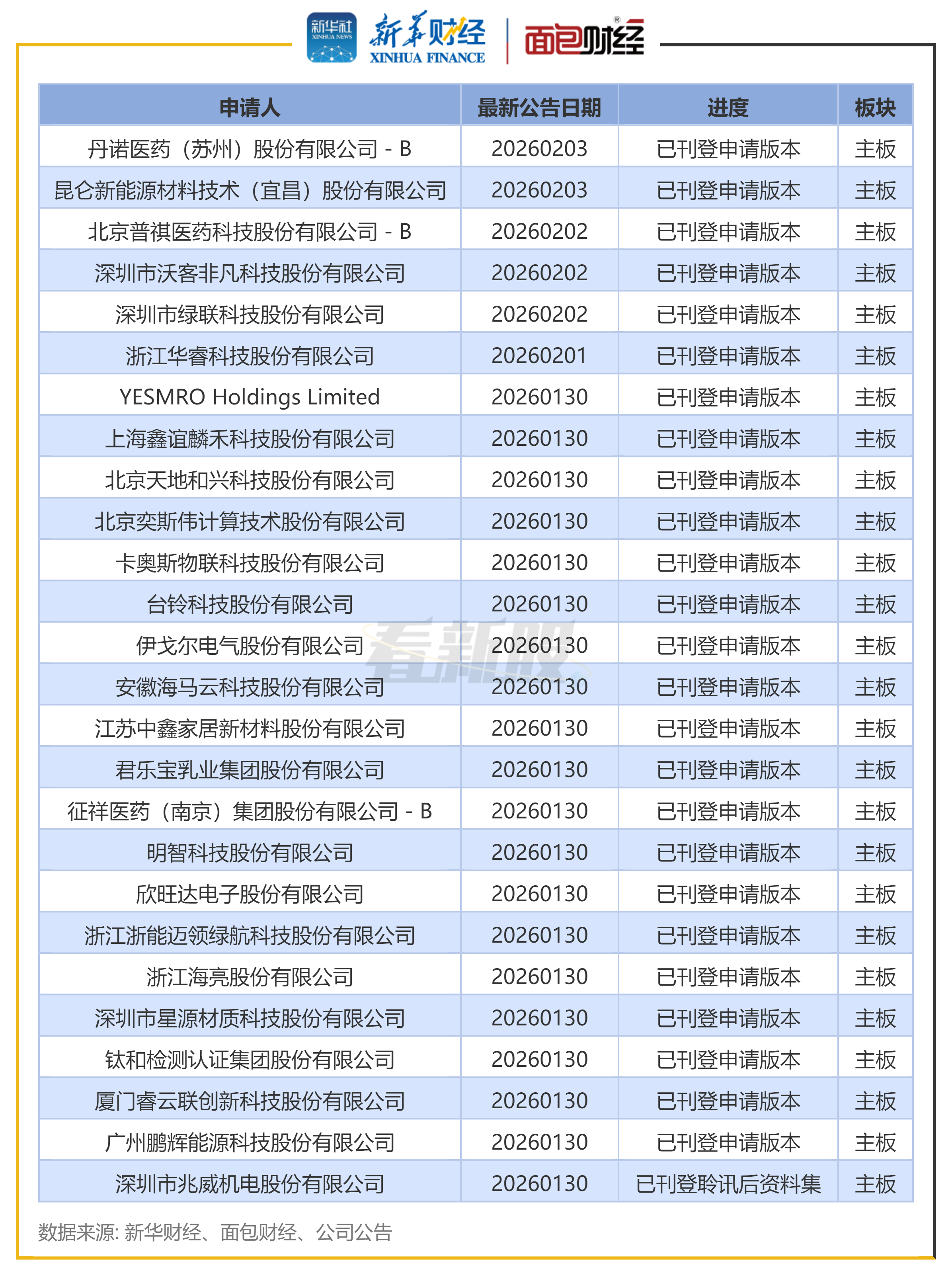 截至2026年2月4日,港股IPO排队企业总共390家,其中有13家企业已通过聆讯。另外,东鹏饮料、国恩科技等股票已于2月上市。