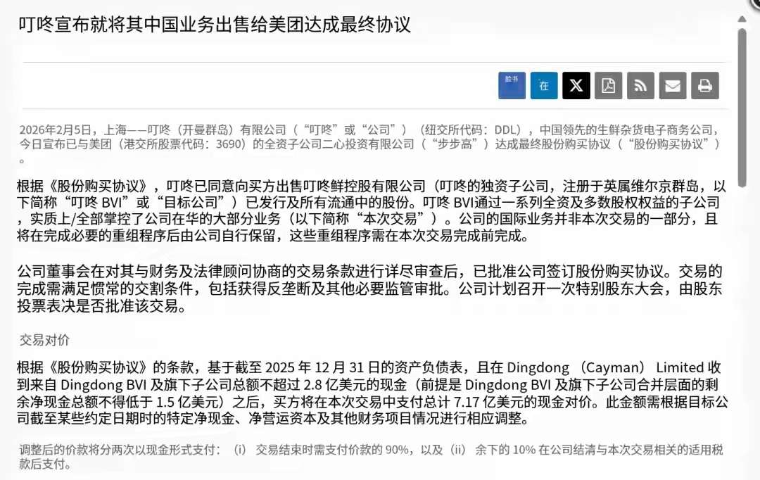 促使这一进程的重要事件,是2月美团以7.17亿美元全资收购叮咚买菜的一纸公告,由此也将行业从沉寂许久的内卷消耗战中,带入了新时期。