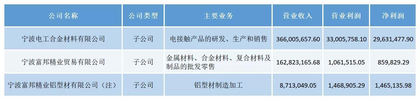 宁波富邦于2024年度完成对电工合金55%股权的重大资产收购,电工合金自2024年12月31日起纳入本公司合并报表范围。2025年上半年,电工合金合并口径实现营业收入人民币3.66亿元,同比增长29.18%;实现净利润2,963.15万元,同比增长89.52%。