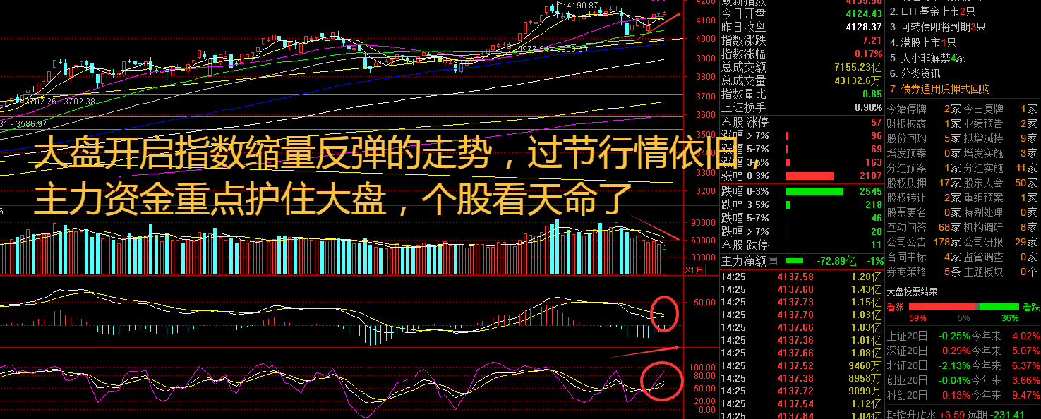 节前市场出现从未有过的一致看多,外资喊多、媒体喊多,这样的情况无疑是想让大家继续在慢牛中“别走”!只不过本周行情很明显是不做盘的继续看多,做盘的机构开始纷纷离场,不管是从成交量来看明显缩量,还是从市场个股的上涨数量来看,早已经进入到春节放假了,现阶段仍然要注意指数将会继续护航,而赚钱效应会递减,这个位置按照自己的策略来应对即可。