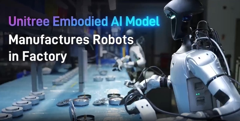 这个方向上宇树也做到了落地速度的领先。春晚开始之前,宇树刚刚展示了具身 AI 模型的应用,基于 UnifoLM-X1-0 具身 AI 模型,宇树在自家工厂完成了实际部署:机器人在自己造机器人。