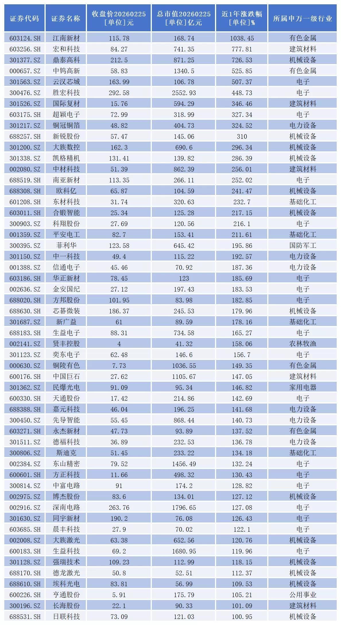 截至2月25日收盘,江南新材近一年股价累计涨幅高达1038.45%。