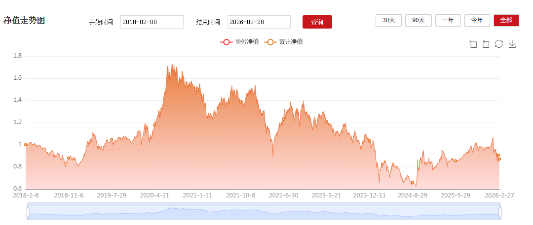 Wind数据显示,截至2026年2月27日,东方阿尔法精选混合A成立以来净值累计下跌12.87%,跑输业绩基准超过35个百分点;过去1年净值下跌0.41%,跑输业绩基准超过10个百分点;2026年以来净值下跌11.47%,同类排名2346/2347。