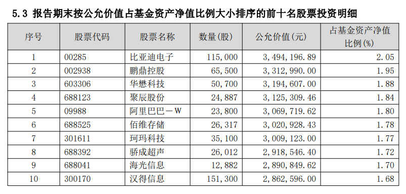 根据申万行业分类,东方阿尔法精选混合2025年四季度末重仓电子行业,前十大重仓股中超过半数为电子行业股票,包括比亚迪电子、鹏鼎控股、聚辰股份、佰维存储等。