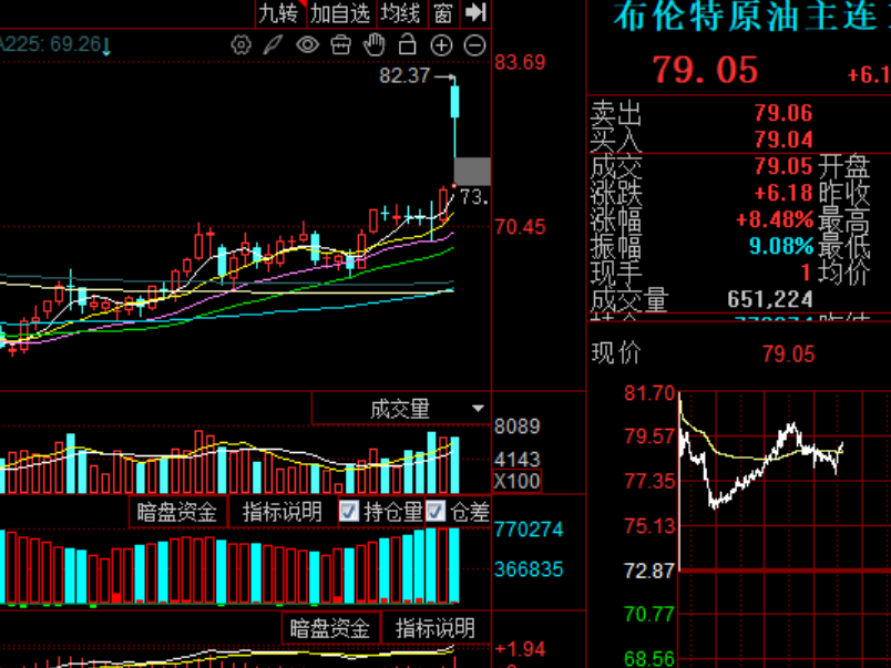油气板块受期货影响太大,受即时战事,这也是老赵不太想参与的原因,我们先看一下今天国际原油的表现:
