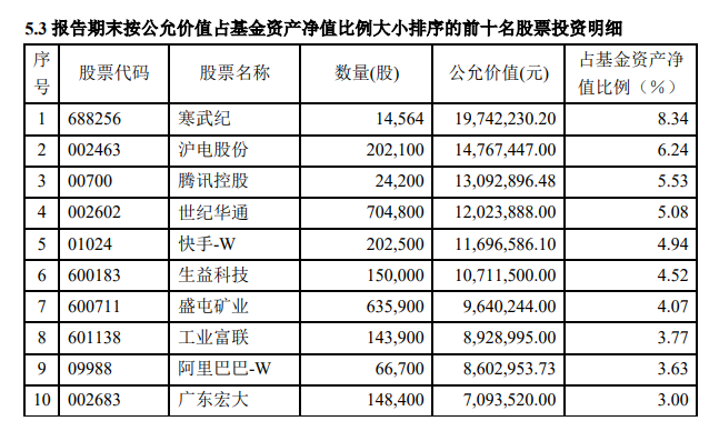 基金经理在四季报中表示:“我们的组合本期重点聚焦在三个方面:1)受益于海外科技发展的算力产业链; 2)本土国产化相关的芯片、设备等;3)部分ai应用龙头,包括游戏、互联网龙头等。往后看,我们认为ai发展对软件应用层面的推动会越来越积极,很多行业都会结合 ai衍生出各种各样的商业模式,包括在智能驾驶、教育、医疗、办公、线上购物等,我们后续在投资研究上会加大对ai应用的布局。”
