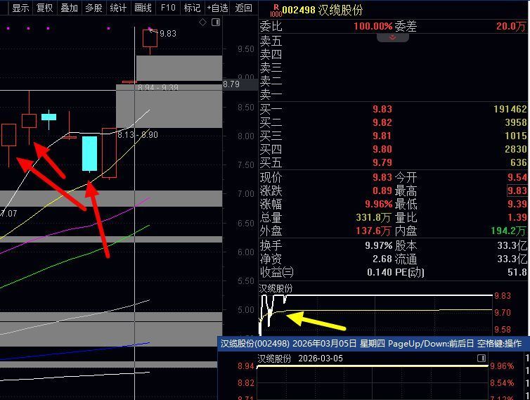 年前反复3次更新关注的002498汉缆股份,还有好多人留言说没有走的,恭喜收获3个涨停30%,它们都是遵守了分时黄色线没有跌破没走,牛了,那么没走的,周一自己把握了记住VIP说的条件做即可