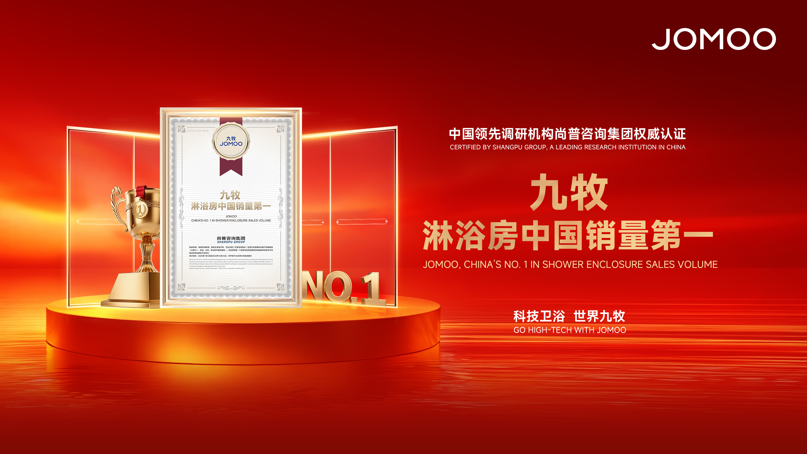 ▲九牧淋浴房获“中国销量第一”权威市场认证
