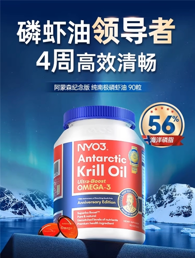 NYO3阿蒙森纪念版磷虾油,正是将"挪威标准"转化为消费者可感知价值的集大成者。它以探索精神为名,以科学实证为骨,以极致品质为魂,其行业标杆地位,建立在四大硬核支柱之上: