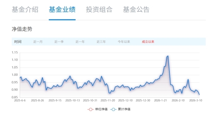 业绩表现上,申万菱信行业精选A自2025年6月成立后便陷入亏损。值得关注的是,基金在2026年开年行情中净值高涨,却在一个月内再次破净重回亏损。