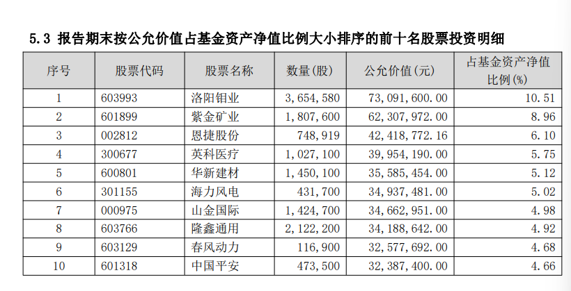 重仓洛阳钼业、紫金矿业、恩捷股份等股票