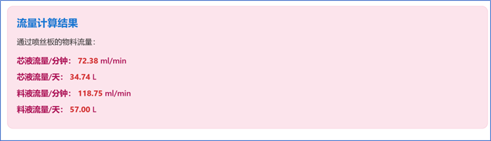 现场调机阶段:通过核算芯液与料液的理论用量,判断是流量供给问题还是其他,从而有针对性地调整泵速或配液策略,缩短调机时间,提高出丝稳定性。