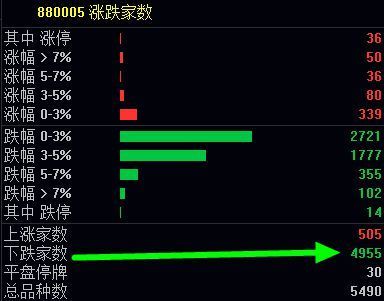 收盘4955只跌,红盘涨的才505只,涨停的才36只,今天90%多的股都是跌的,今天的大跌是因为美 国联 合以 色 列对伊 朗战 争升级了,美国股市连续跌半个多月了,国际全球股市都大跌,所以A股大盘指数今天低开跟着大跌,今晚如果局势冲突没有得到缓解,美国股市继续大跌,那么指数大盘没有利好消息对冲的话也会继续跟着大跌,如果后面汪汪队不护盘的话,可能会去考验年线3700点附近,真的跌到这个位置的话,散 户普通人后面99%必亏无疑,所以注意降低仓位应对风险。
