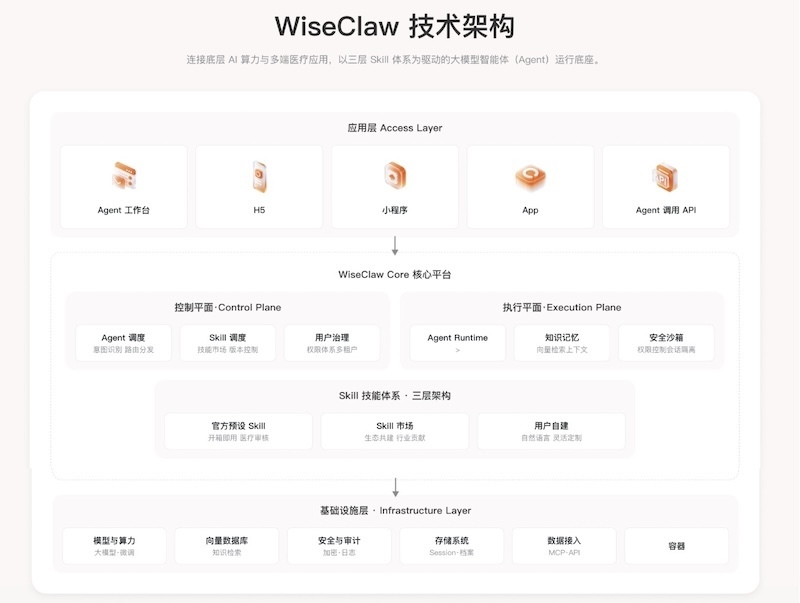 智诊科技(WiseDiag)宣布正式发布企业级医疗健康行业智能体平台WiseClaw。平台以OpenClaw架构为底座,通过统一网关与标准化工具调用协议,将模型推理、知识与证据系统、流程编排、权限合规、评测审计与运营监控整合为一体,帮助医疗机构与健康产业链从“能生成”走向“可执行、可治理、可规模化”的智能体生产系统。