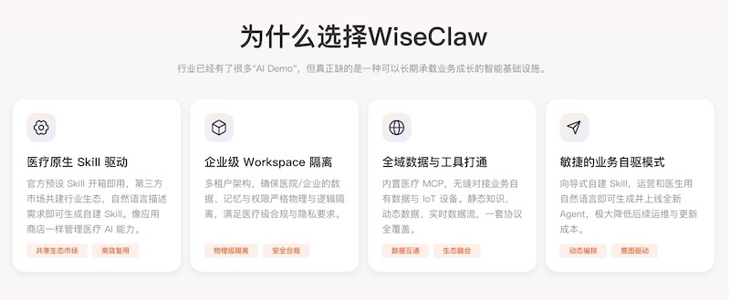 围绕医疗企业的实际需求,WiseClaw具备五大领先特性: