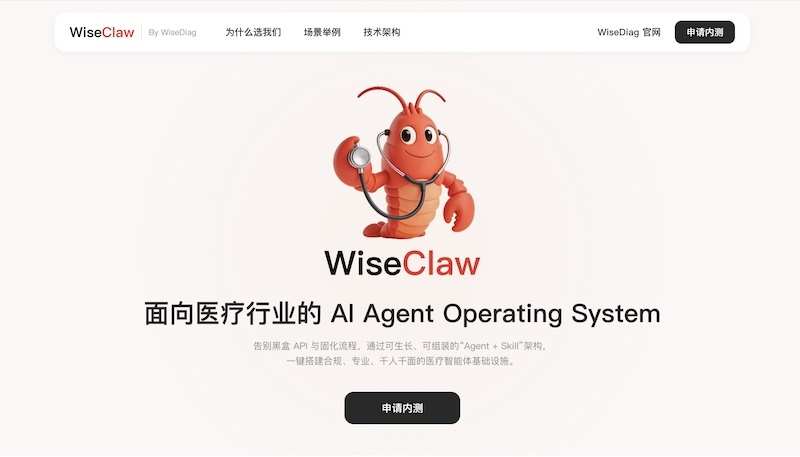 [摘要] 智诊科技(WiseDiag)宣布正式发布企业级医疗健康行业智能体平台WiseClaw。