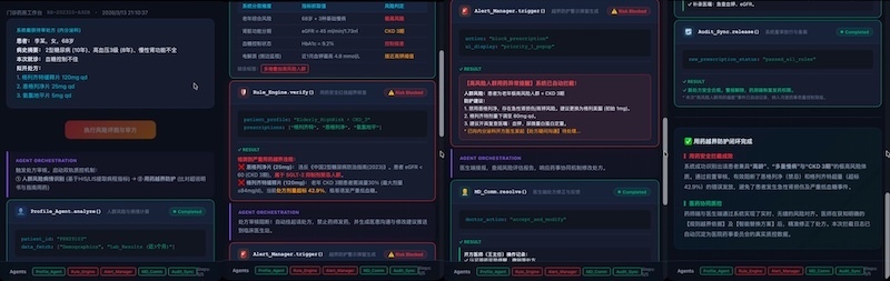 在药店与院外处方流转场景中,智能体可进行药物相互作用检索与指南核验,输出风险分级与建议,供药师复核;