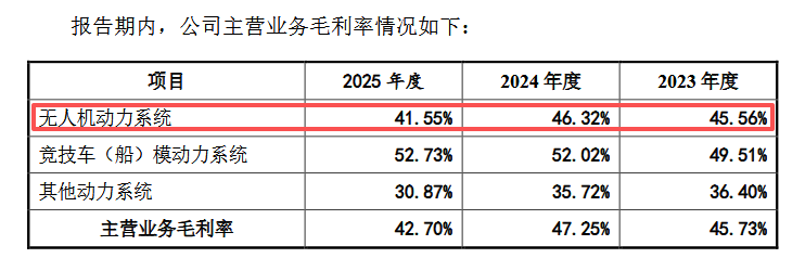 核心盈利指标毛利率持续走低,成为好盈科技业绩的最大短板。2025年,该公司的无人机动力系统毛利率较2024年同期减少了4.76个百分点,整体毛利率从2023年的45.56%下降至2025年的41.55%,下降幅度明显。好盈科技将原因归结为低功率产品收入占比提升、产品单价下降,但深层次原因是行业竞争加剧、产品结构偏向中低端,公司在高端市场的竞争力不足等。更为严峻的是,该公司无人机电机单价两年内暴跌约65.4%,直接带动核心产品盈利空间收窄,陷入低价竞争的被动局面。
