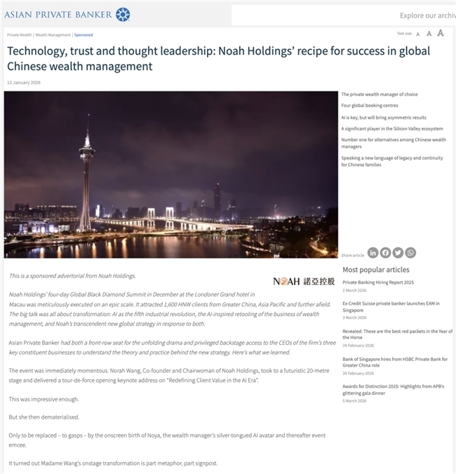 诺亚财富管理矩阵的持续进化 |对话《亚洲私人银行家》