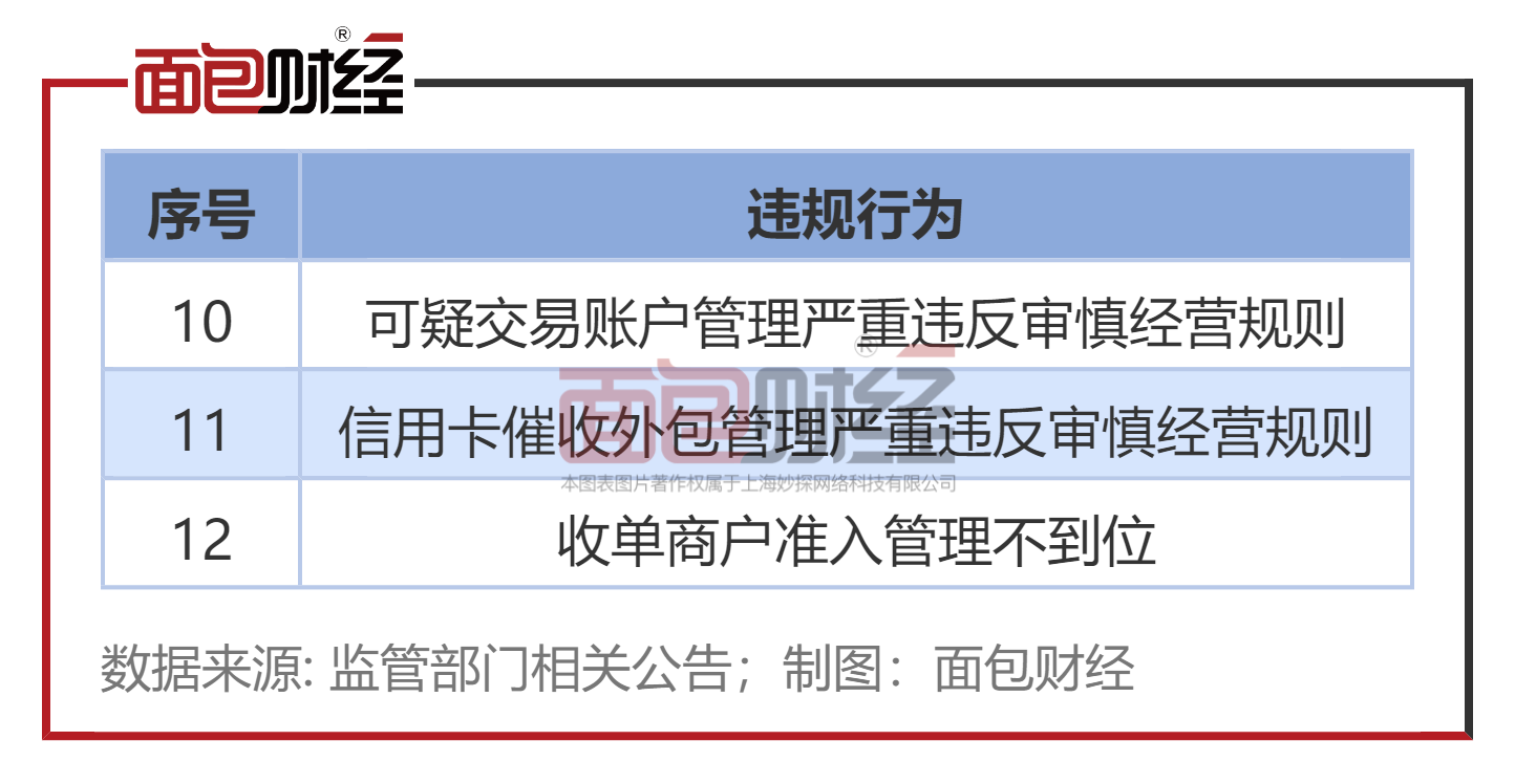 解读:可疑交易账户管理违规涉及反洗钱合规;催收外包管理违规则可能导致持卡人遭受不合规催收行为。如您曾遭受建设银行信用卡催收人员的不当催收,可通过12378热线进行投诉。