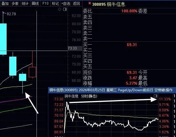 聪明人看的是选股成功率,有80%就很牛了,坚持必然大赢小损,利润积少成多,不聪明的就要求你每只票必须100%止盈大涨出来才认为是牛,没用的,27只连续1个月没错能涨的时候也没人说,所以追求每个票都100%能止盈次日百分百涨的人,请你取消关注我,立刻删除我感谢昨天更新了3只创业板新战法让大家关注,不要做,3只今天都涨了,最强的是铜牛信息,看上面截图早上直线大涨11%,其他2个,1个最高涨4.7%,还有个1.7%,很明显经历这3个的走势,这里总计到细节问题在哪里了,那么后面继续优化提升胜率,尽量选能大 涨的,这样容易利润积少成多,后面不断继续优化,需要1个月时间实践跟踪,所以耐心等,先不要做。