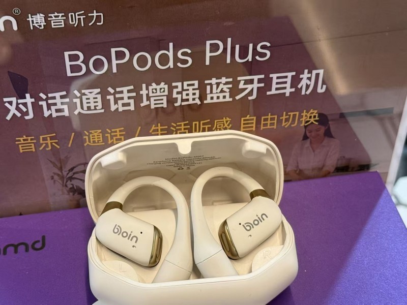 “博音听力这次展示的产品很有看点。特别是博音听力出品的BoPods Plus对话通话增强蓝牙耳机,它的开放式设计,既不闷耳又清晰、均衡、耐听,还原音乐本真的声音,音质比传统蓝牙耳机好太多。”