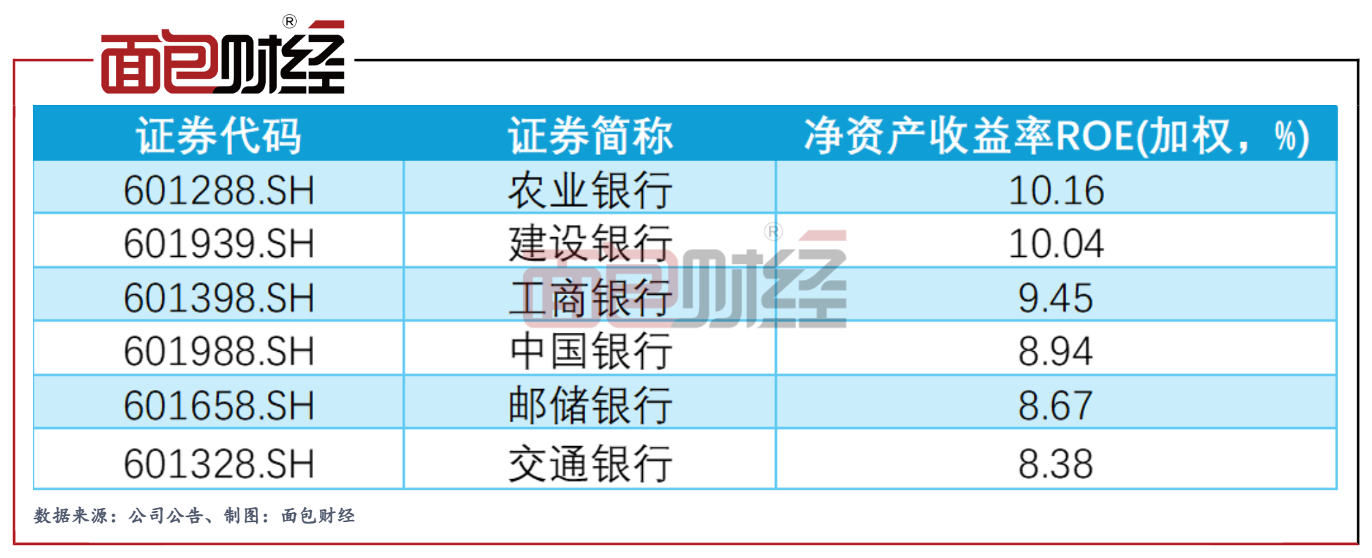 持续下滑,交行ROE垫底国有大行