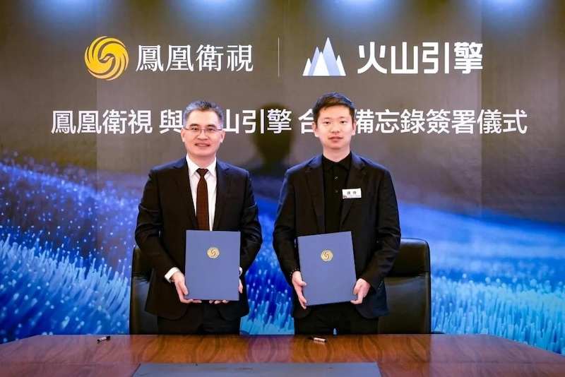 凤凰卫视执行副总裁兼集团运营总裁李奇与火山引擎总裁谭待签署合作协议