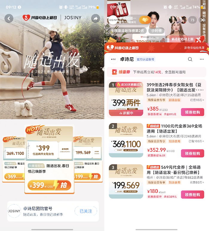 3月18日至3月31日期间,深受年轻女孩喜爱的时尚女鞋品牌卓诗尼,携手「抖音心动上新日」开启了一场名为“随适出发”的春日上新活动。这不仅是鞋帽服饰品类首次登陆「抖音心动上新日」,更是一次充满萌趣的跨界联名——潦草小狗IP惊喜加盟,为春日上新增添了一份俏皮与治愈。
