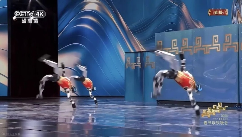宇树机器人在表演单腿连续空翻