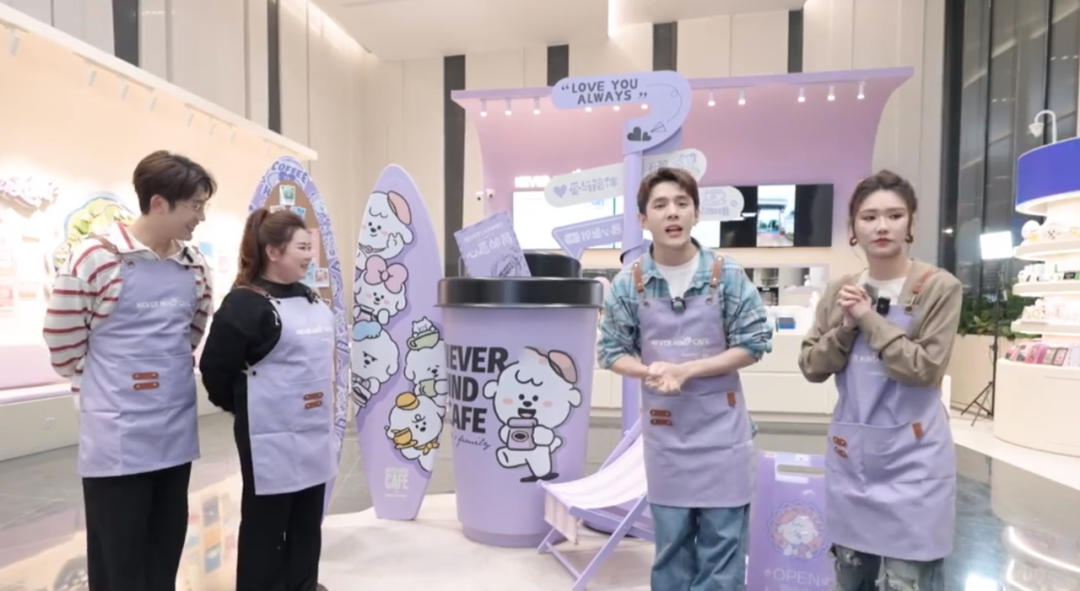 ▲李佳琦在介绍奈娃家族咖啡店 图源:李佳琦微博视频