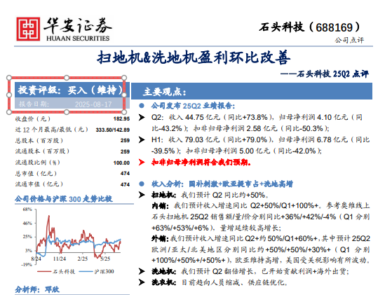 而在2025年8月17日,华安证券发布研报给予公司“买入”评级。研报称,公司Q2实现多区域(中/欧/亚)+多品类(扫地/洗地机)收入高增;预计来自扫地机产品策略调整+洗地机规模效应之下的盈利改善;预计2025-2027年公司归母净利润18.54/23.89/28.93亿元,同比-6.2%/+28.8%/+21.1%;对应PE26/20/16X。但在研报中,华安证券分析师未充分提示高管减持事项。