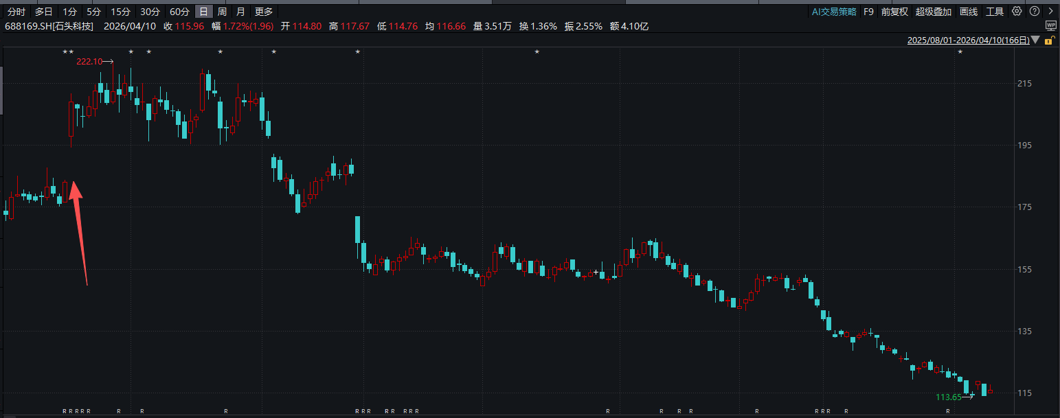 随后自2025年10月,公司股价开启持续下跌,截至2026年4月15日,石头科技股价较研报披露时期跌幅超30%。