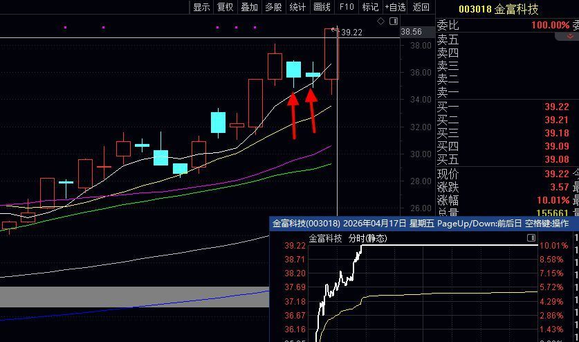比如连续2天尾盘更新关注的中线金富科技,今天涨停牛了,本还计划3跌3个阴线继续补仓的,结果早上分时黄色线没有跌破,涨停。可见,中线模式也是有涨停的,所以坚持+耐心,后面回血新高