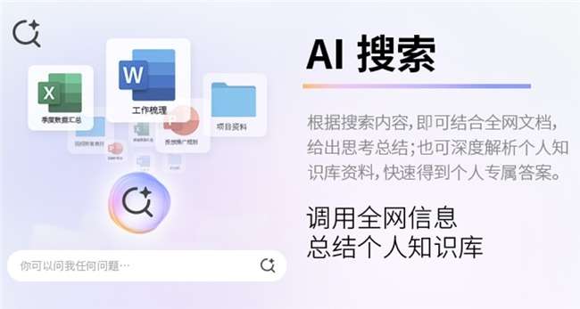 面对海量的行业资料梳理,AI搜索可调用全网信息构建个人知识库,既能结合全网文档给出深度思考总结,又能深度解析本地资料,快速输出专属答案;