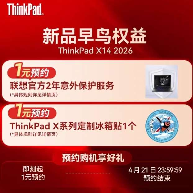 ThinkPad X14 2026 笔记本电脑1元预约活动,解锁专属权益