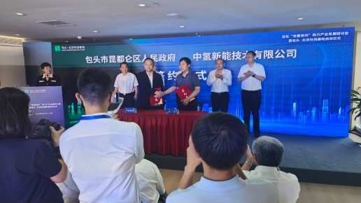 2023年8月:包头(北京)人才科创基地正式开业运营,邀请中氢新能董事长周明强出席仪式。活动期间,中氢新能与昆区人民政府签署合作框架协议,明确合作方向。